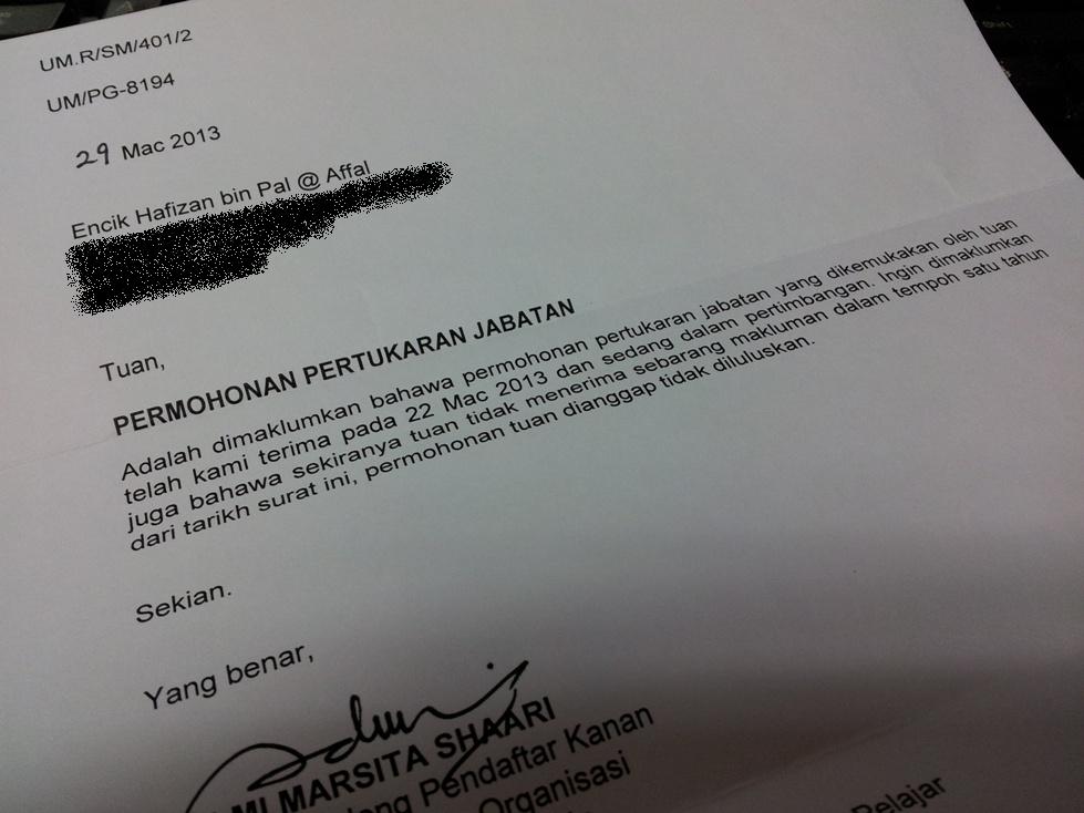 Janjinya, kami akan berada di tempat itu hanya untuk empat hingga lima tahun. Tetapi, segala janji dari pihak pengurusan hanya dicapati saja. Satu pon tak boleh pakai dan hanya kencing semata-mata. Sama seperti tempat aku sekarang ni, janji yang dicapati hanya untuk tiga empat tahun, tapi sekarang sudah hampir 10 tahun dan kami sudah selesa di sini. Kecewa dengan itu, aku sudah pon menghantar borang Permohonan Tukar Jabatan. Percubaan aku untuk melepaskan diri dari kemelut ini. Tiada masa depan aku terus di sini.